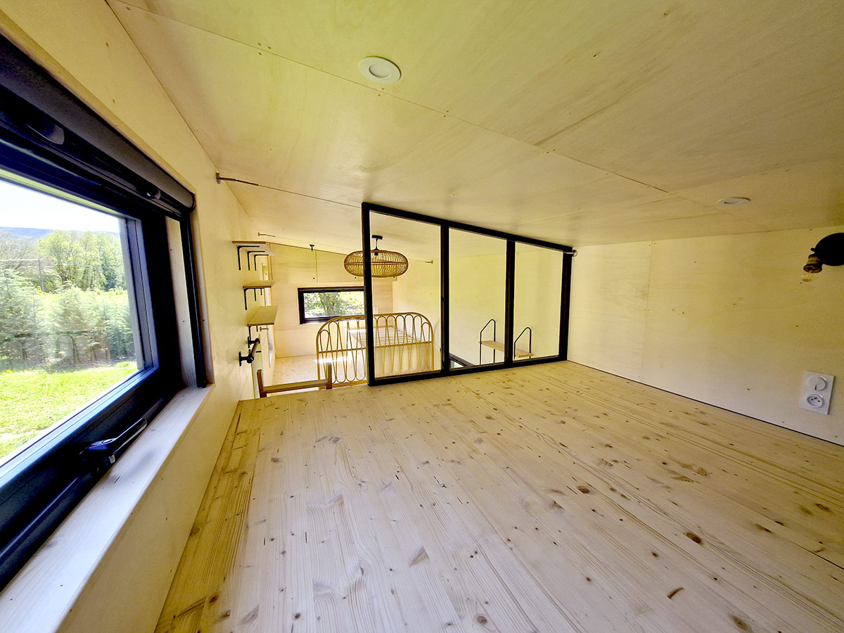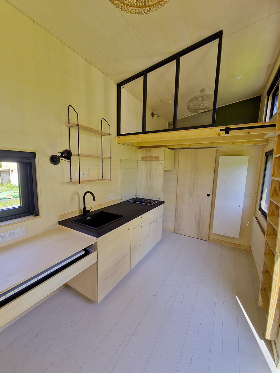 C’était un réel plaisir de construire un intérieur atypique et épuré où chaque finition est visible et révèle l’importance du détail. De plus, l’aménagement qui diffère de nos autres Tiny, permet d’entrevoir les multiples possibilités de choix d’aménagement en fonction des modes de vie.