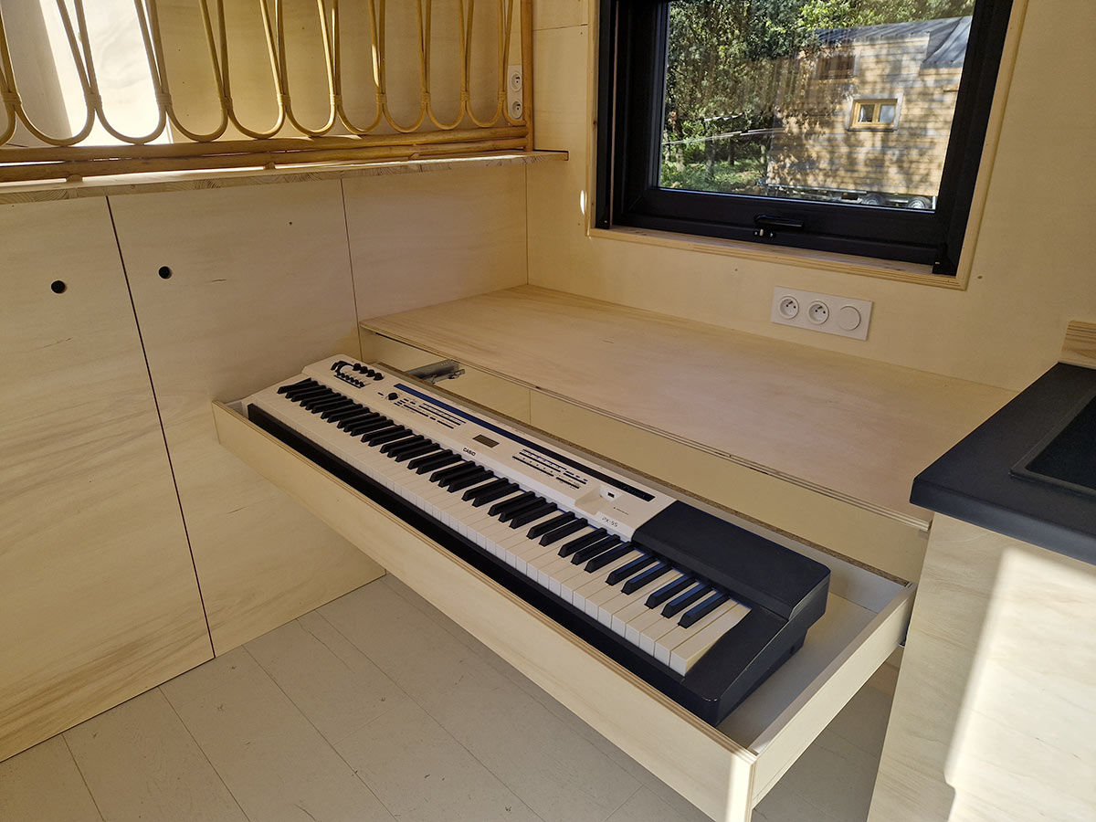 Le bureau en face de la fenêtre pourra accueillir les temps de travail, mais aussi les mélodies au piano de Camille.