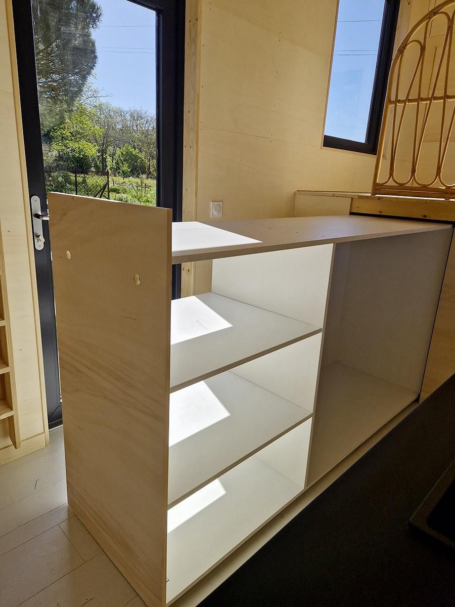 Aménagement : meuble en peuplier, coulisse et charnière blum
