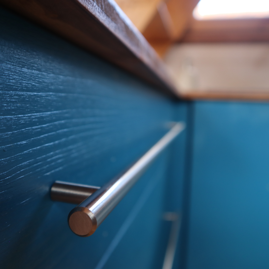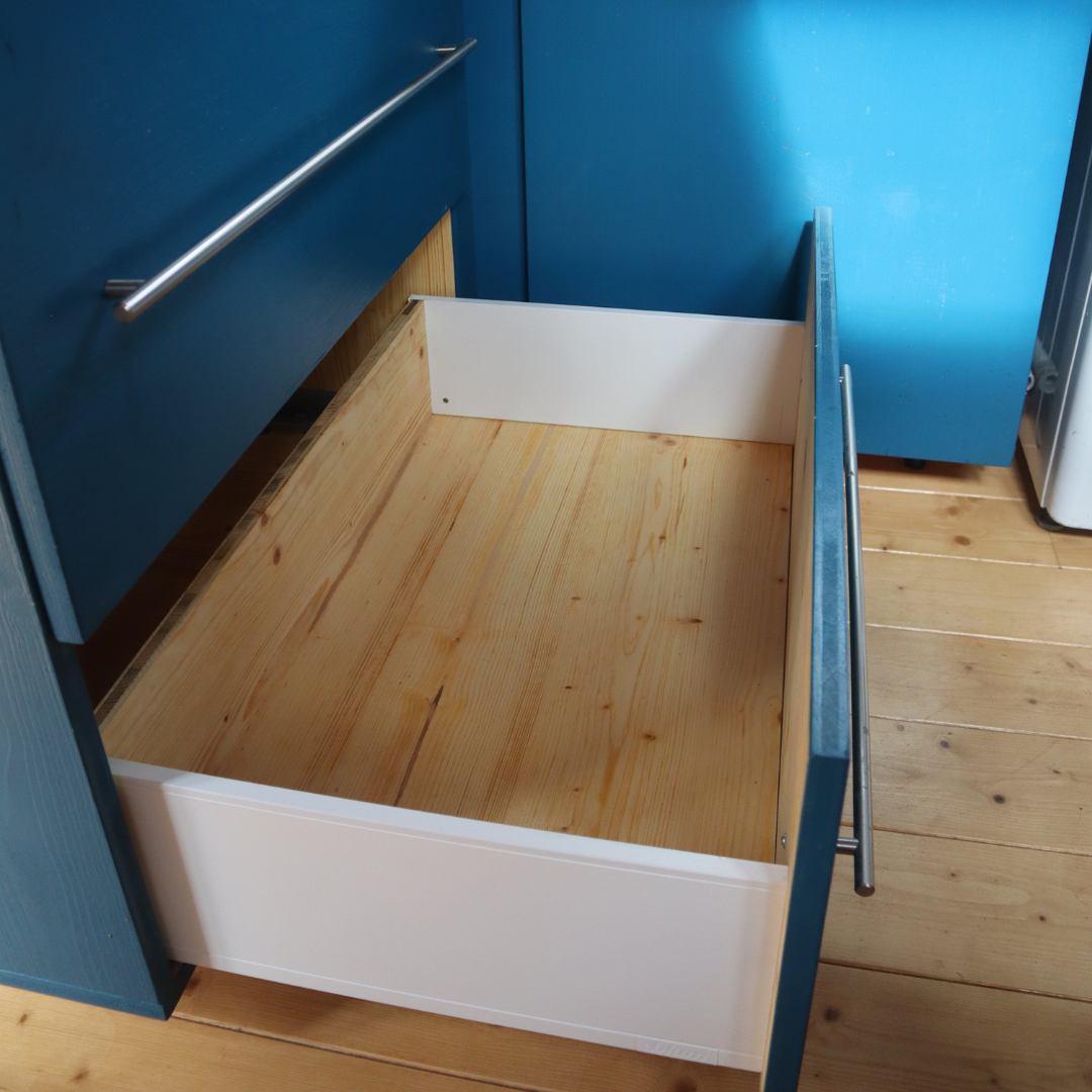 Aménagement : meuble en épicéa, coulisse et charnière blum