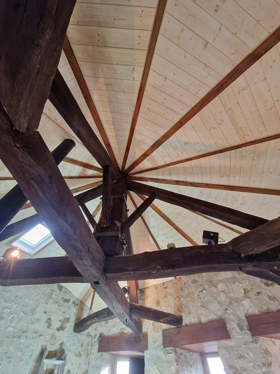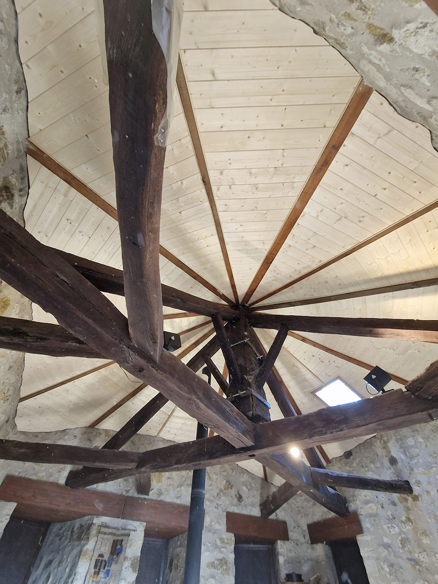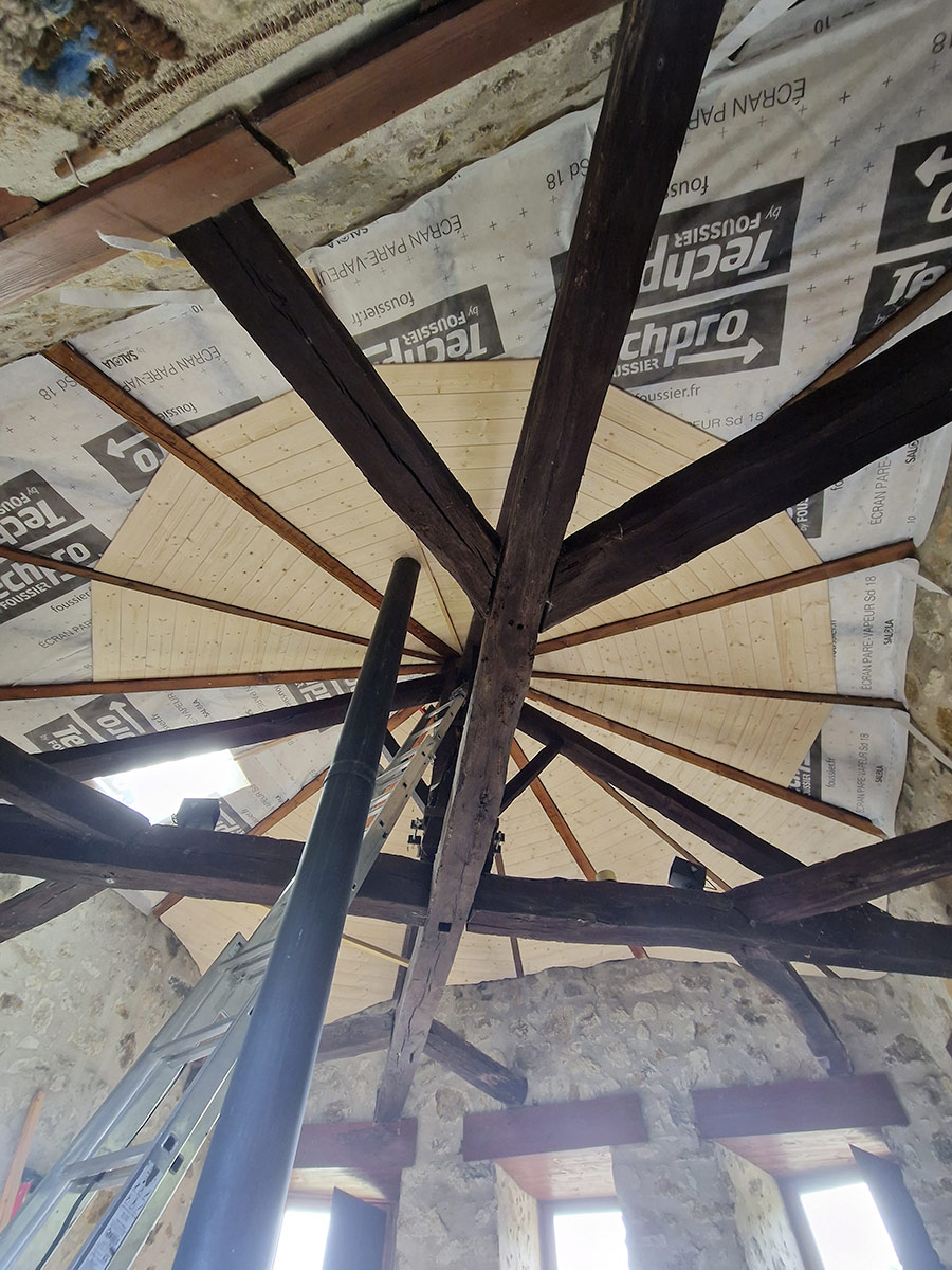 Nous avons participé à la rénovation d’une ancienne tour, un projet où la précision était essentielle. Notre mission : remettre à neuf l’habillage et l’isolation des plafonds, en utilisant du lambris épicéa.